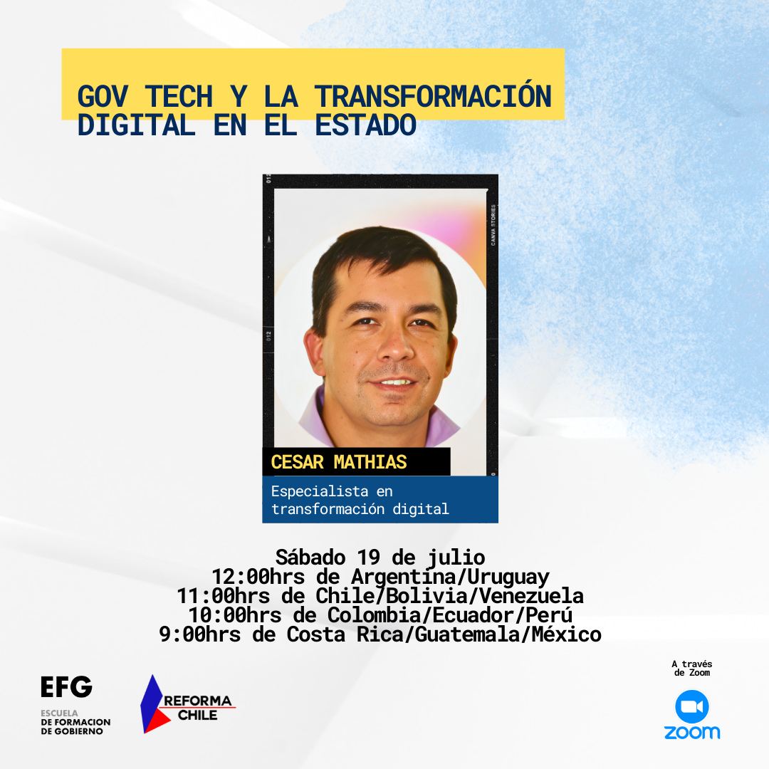 Durante el mes de julio se realizó una nueva charla en el marco del Diplomado en Política y Asuntos Públicos. En esta oportunidad, la charla fue brindada por César Mathias, especialista en transformación digital. César abordó los desafíos que existen en las los procesos organizacionales de la administración pública y la necesidad de incorporar la innovación y las herramientas digitales para favorecer la legitimidad y mejorar la atención ciudadana.